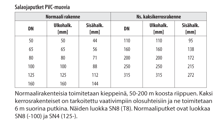Putkien normaalipituus n. 6,0 m.
