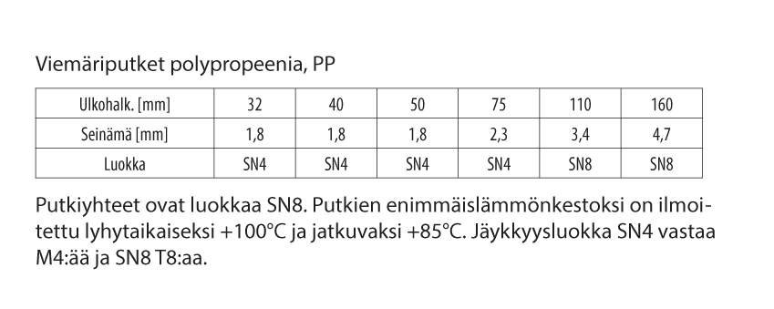 SN8/T8 liikennöitävät ulkoalueet ja vastaavasti kuormitetut putkiosuudet.