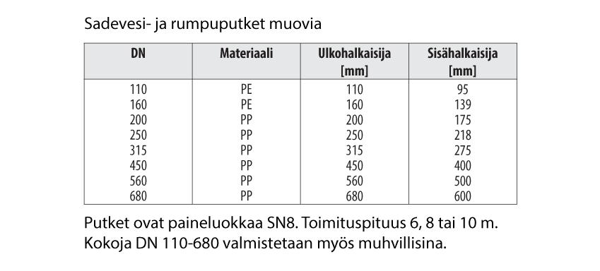 Putkia on saatavissa 10,2-508,0 mm. ulkohalkaisijoilla.