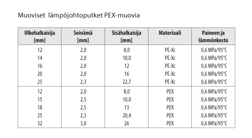 – kondenssieristettynä tuplaputkena, koot 12 ja 15 mm.